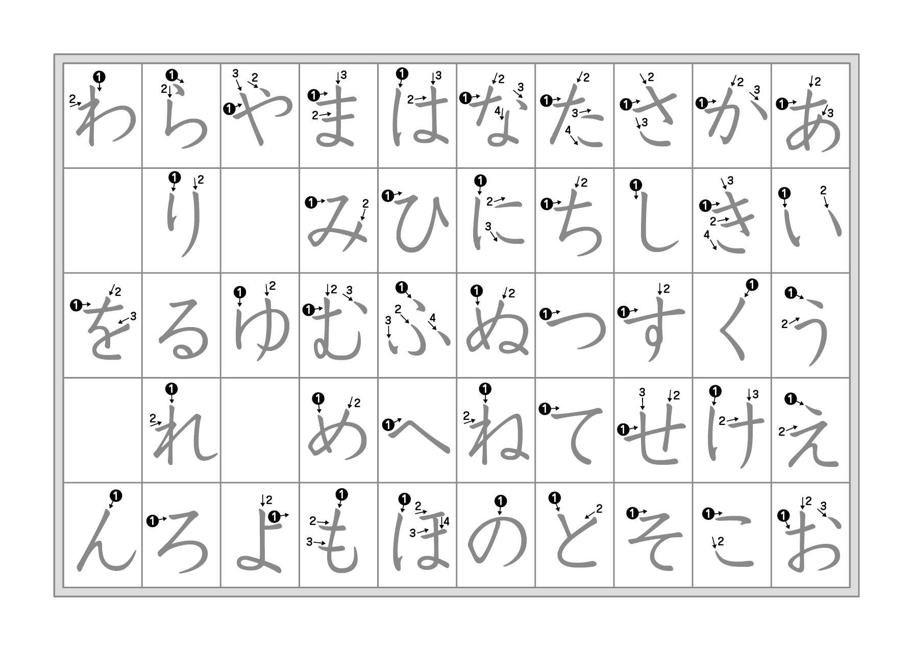 Hiragana Alphabet Stroke Order : Ya For Hiragana And Katakana Japanese Word Characters And Images -. Animación del orden de los trazos para escribir el . Hiragana is a phonetic alphabet that was developed in the ninth century to simplify writing. From the top ridge of the line, . Eight stroke order rules for writing japanese . Hiragana writing practice sheet author: